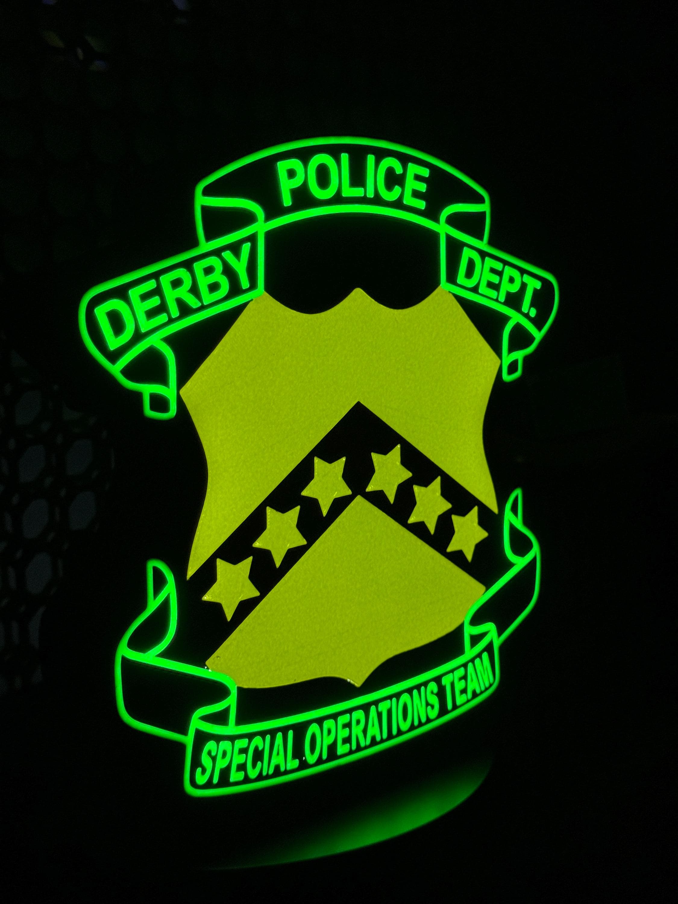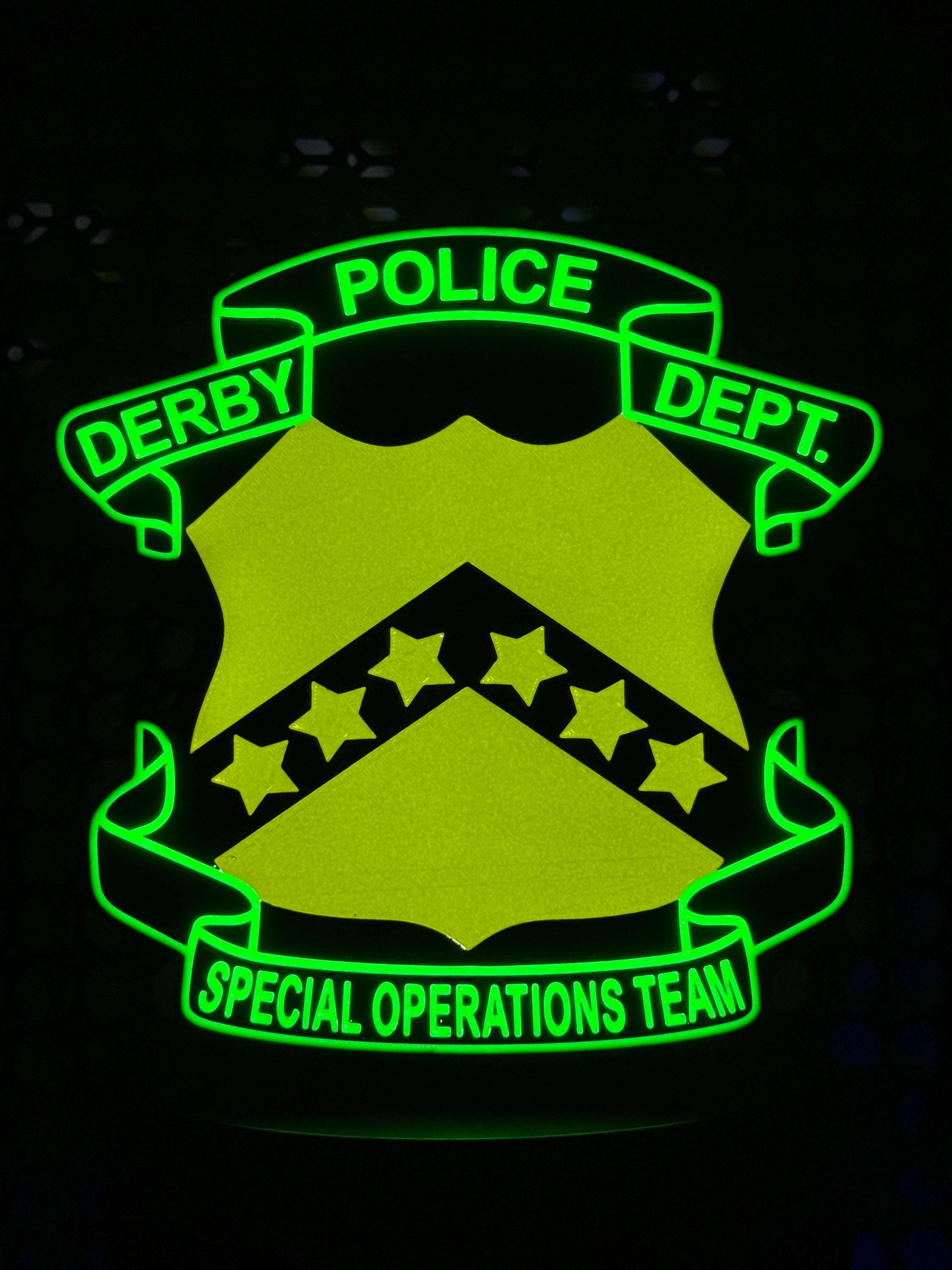 Show your respect and admiration for the elite members of the Derby Police Department's Special Operations Team with this custom-made LED display. This luminous piece of art is a perfect way to honor the officers who handle the most complex and high-risk situations to ensure the safety of the Derby, Kansas community.