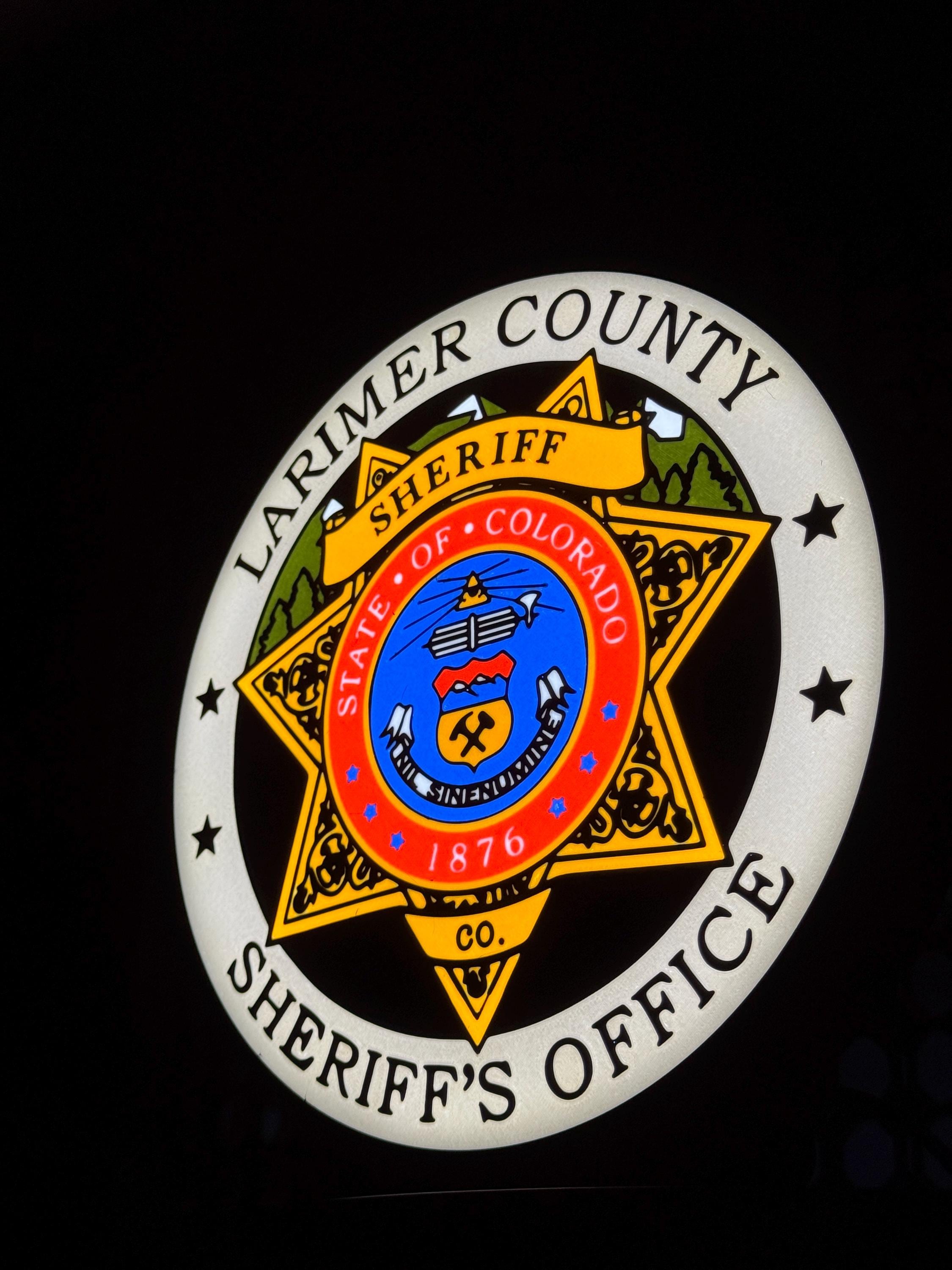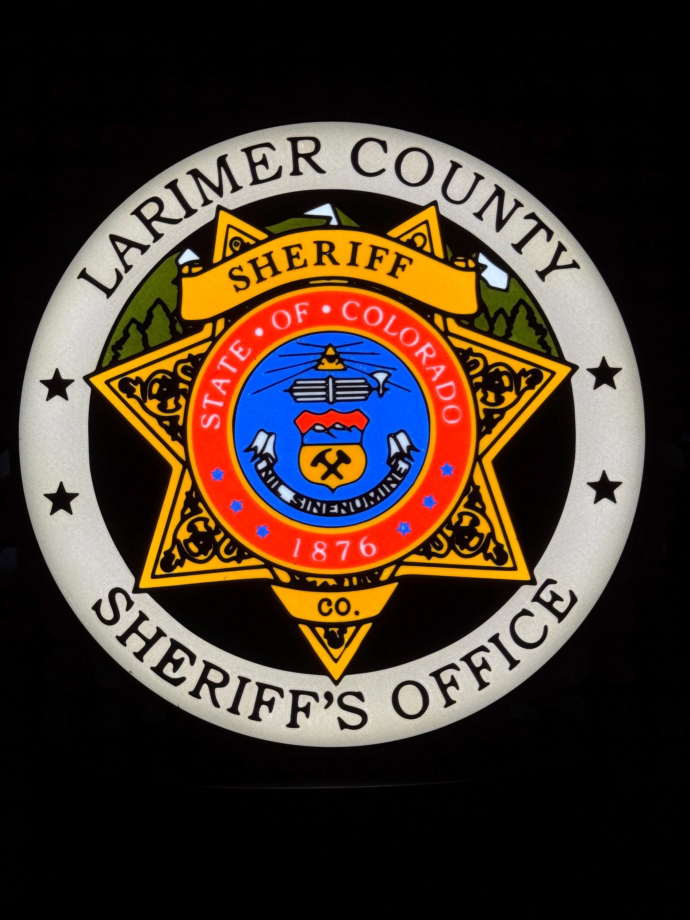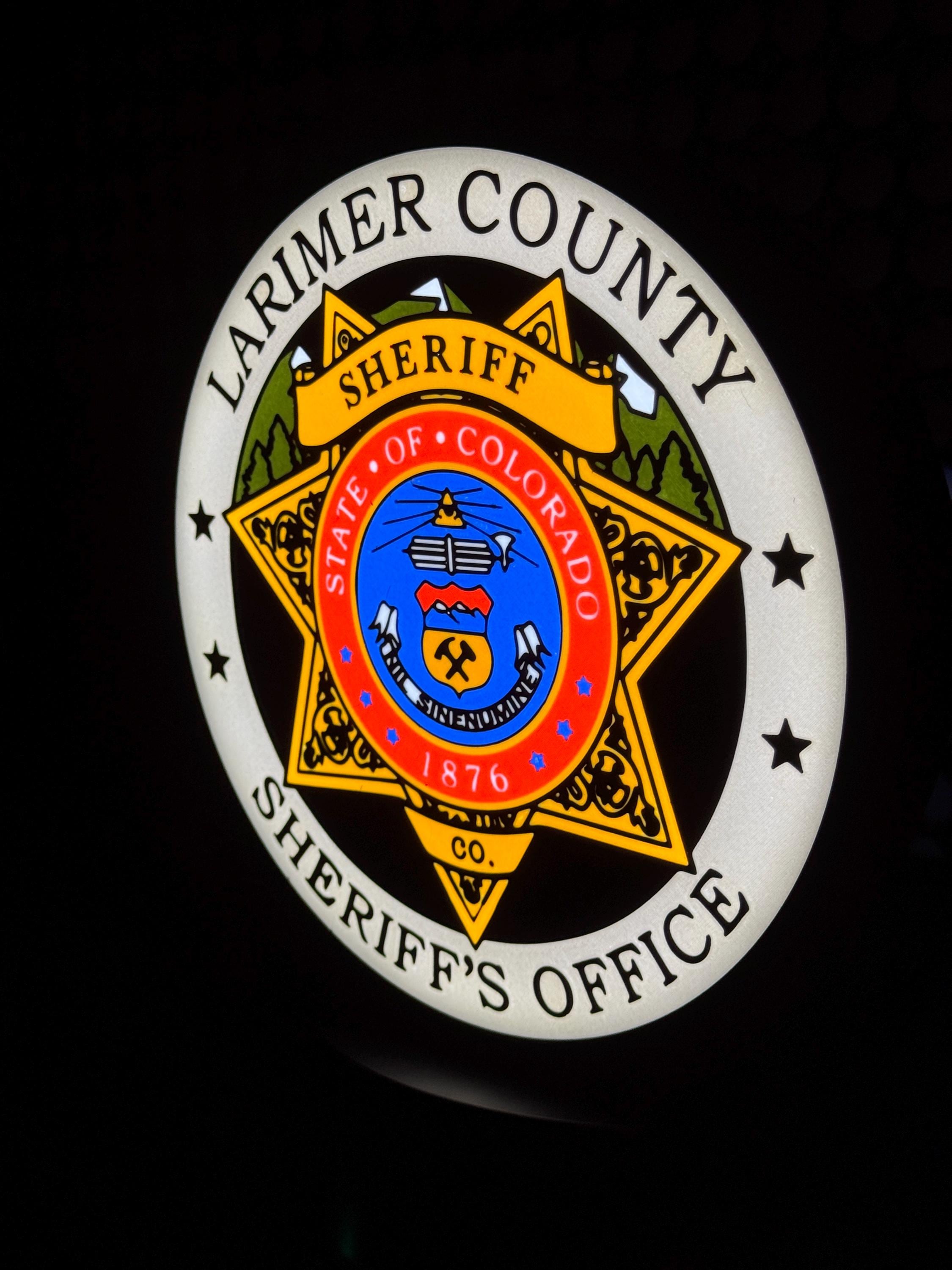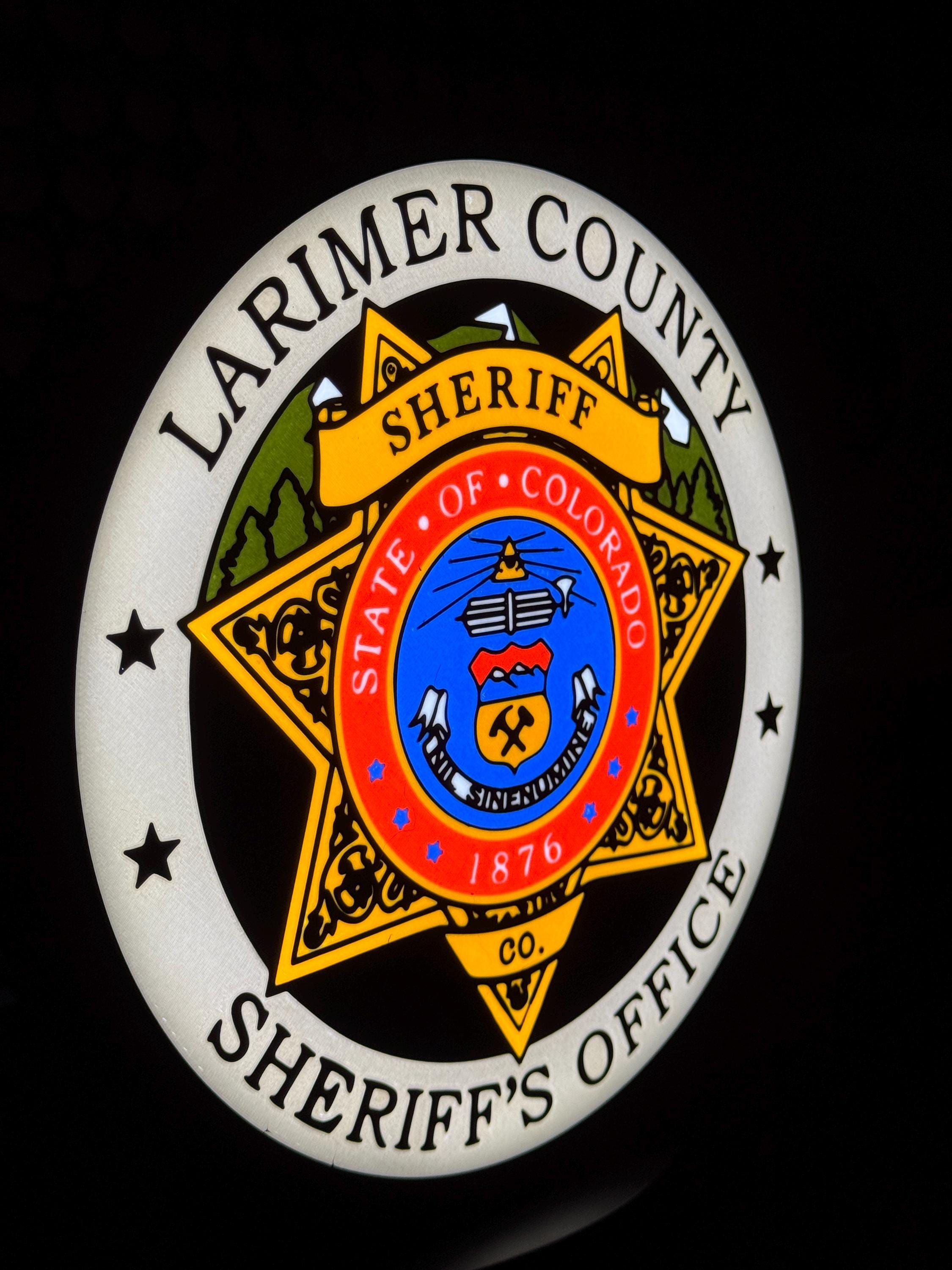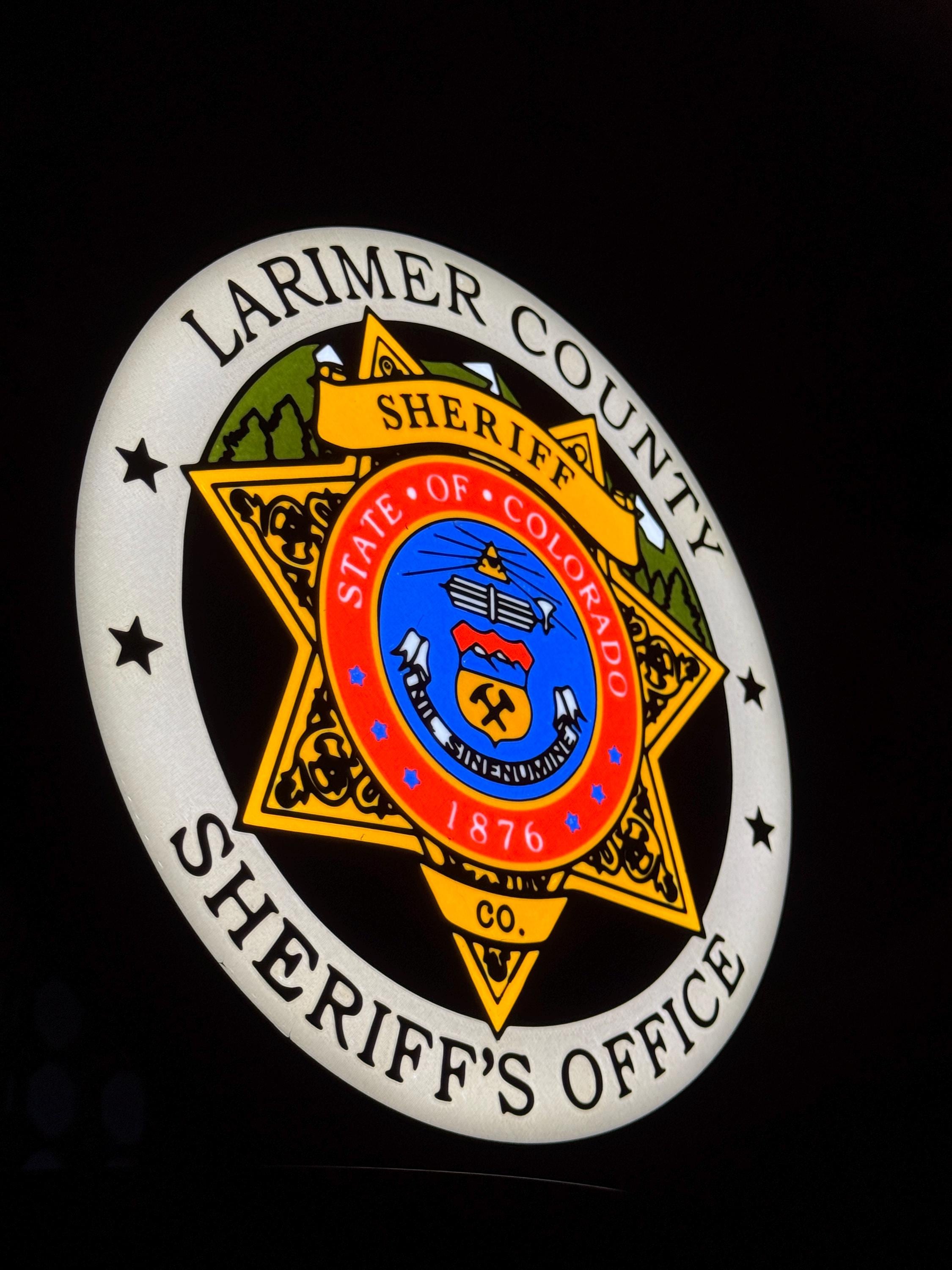 Authentic Larimer County Badge design, accurately representing the LCSO emblem.